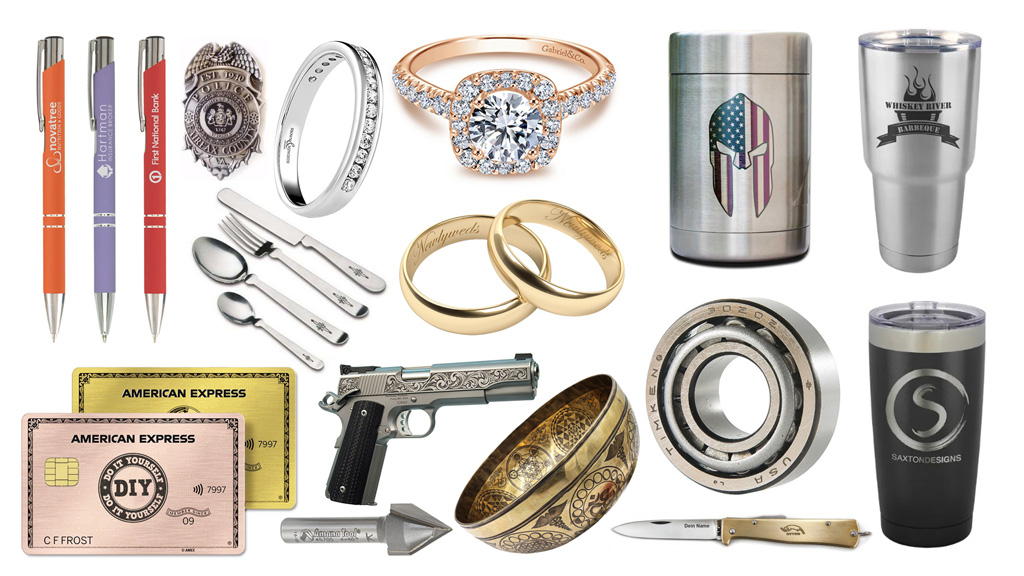 Deep laser engraving works nice on metals such as: Carbon steel、Stainless steel、Aluminum、Brass、Tool steel、Gold and silver Pulse fiber lasers at 1064 nm offer incredible overall performance on those materials.
